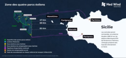 Med Wind sera un parc éolien en mer avec des turbines à haute puissance, produisant de l’énergie propre en exploitant la force du vent. Ce sera un projet hautement durable pour l’environnement : grâce à la technologie innovante « flottante », les structures seront flottantes et non fixées aux fonds marins. Le projet a été développé en tenant compte de tous les aspects de protection de l’environnement et de compatibilité avec le territoire, avec le soutien des associations environnementales. La distance par rapport à la côte évite les impacts paysagers et des mesures d’atténuation innovantes seront mises en œuvre tout au long de la vie du projet. Med Wind est l’exemple le plus avancé du modèle Renexia, pour développer une nouvelle énergie propre, créer une chaîne de valeur pour la Sicile et l’Italie et contribuer stratégiquement à la transition énergétique.
